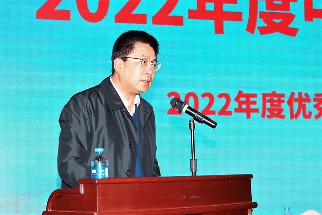 圖為蘇長永宣讀2022年度優秀論文表彰決定