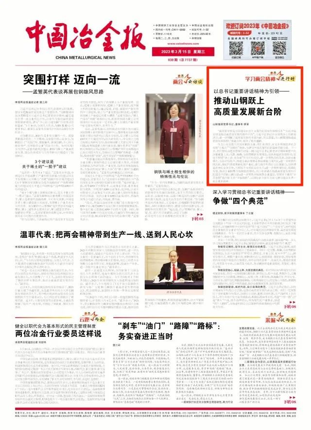 作為山東省最大的國有鋼鐵企業,我們有責任、有義務勇擔經濟社會發展“壓艙石”“頂梁柱”使(shi)命(ming),為(wei)譜(pu)寫(xie)中(zhong)國(guo)式(shi)現(xian)代(dai)化(hua)新(xin)篇(pian)章(zhang)貢(gong)獻(xian)力(li)量(liang)。下(xia)一(yi)步(bu),我(wo)們(men)要(yao)堅(jian)決(jue)把(ba)思(si)想(xiang)和(he)行(xing)動(dong)統(tong)一(yi)到(dao)習(xi)近(jin)平(ping)總(zong)書(shu)記(ji)重(zhong)要(yao)講(jiang)話(hua)精(jing)神(shen)和(he)黨(dang)中(zhong)央(yang)決(jue)策(ce)部(bu)署(shu)上(shang)來(lai),完(wan)整(zheng)、準確、全麵貫徹新發展理念,加快構建新發展格局,堅定不移把“爭上遊、走在前”作為目標定位,進一步聚焦深化改革,創新商業模式,全麵對標提升,推進企業治理體係和治理能力現代化;進一步聚焦科技創新,強化科技成果轉化和產業化,著力提升科技自立自強能力,加快塑造差異化競爭優勢,不斷提升本質化運營水平;進一步聚焦綠色化、低碳化發展,推動企業轉型升級和提質增效,在山東省綠色低碳高質量發展先行區建設中貢獻山鋼力量;進一步聚焦幸福和諧企業建設,用領導幹部的“辛苦指數”提升職工的“幸福指數”,以團結奮鬥新作為奮力譜寫建設世界一流企業新篇章。