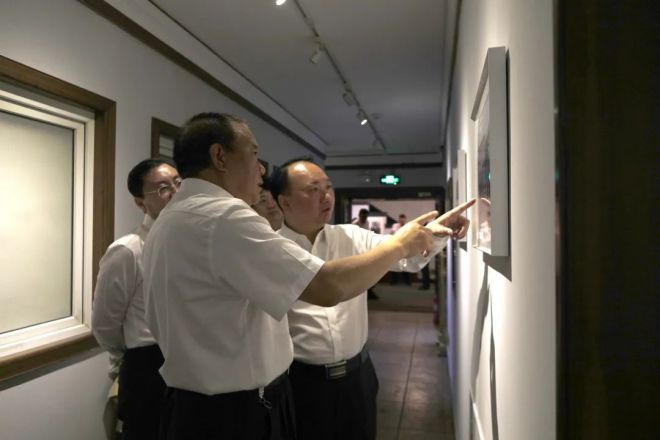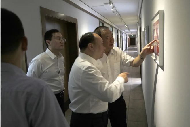 圖為陳玉千陪同袁斯浪參觀中國冶金報社