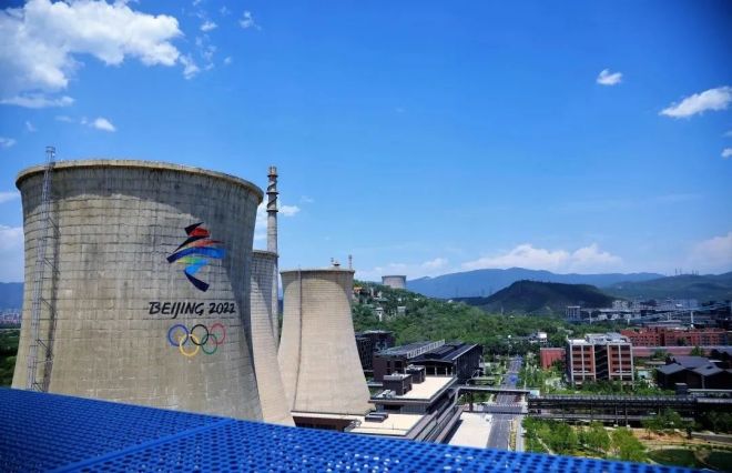 圖為與會人士在首鋼園區調研百年老工業區綠色低碳轉型升級,參觀冷卻塔及周邊冬奧會設施