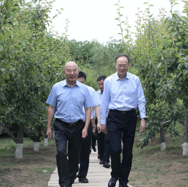 工作交流結束後,何文波一行同譚成旭一起,到鞍鋼礦業複墾生態園進行現場調研。
