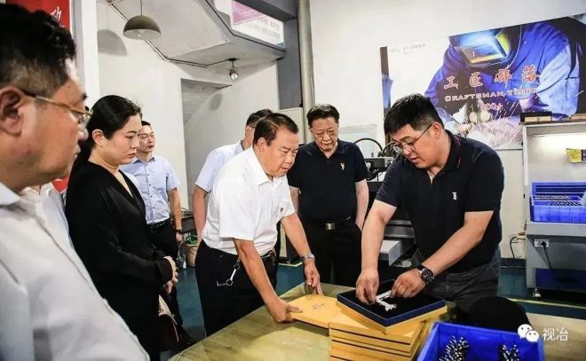調研中,陳紅兵講述了作為“80後”戴南人用不鏽鋼材料實現藝術之夢的故事。陳紅兵與團隊摸索出一個“創客+工匠+用戶”的共創、眾包、共享的創投模式,通過創意到成品、成品到產品,開發了80多種不鏽鋼工藝品暢銷不衰;在不鏽鋼材料的使用方麵,除了板、條塊、鋼管、棒線等常規材料,還有不鏽鋼廢渣等廢料,創造了不鏽鋼新消費。在工作坊,利用不鏽鋼廢渣製作的《喜馬拉雅山脈》實景模型可謂以假亂真,且實現了化“廢”為寶。代表們感歎具備完整齊全的不鏽鋼產業鏈戴南,是“小陳故事”茁壯成長的土壤,“小陳故事”催人奮進。