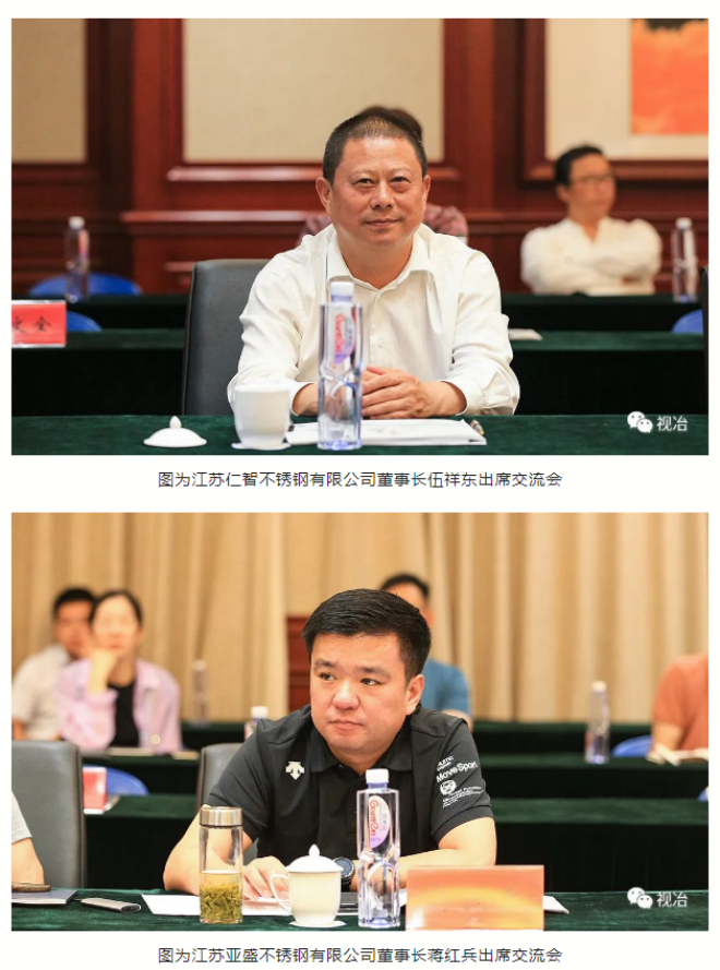 會議期間,與會代表前往江蘇“小陳故事”文化創意有限公司、江蘇星火特鋼有限公司調研,聽取了興化市不鏽鋼行業協會秘書長沈培林關於戴南鎮不鏽鋼行業發展情況的介紹。