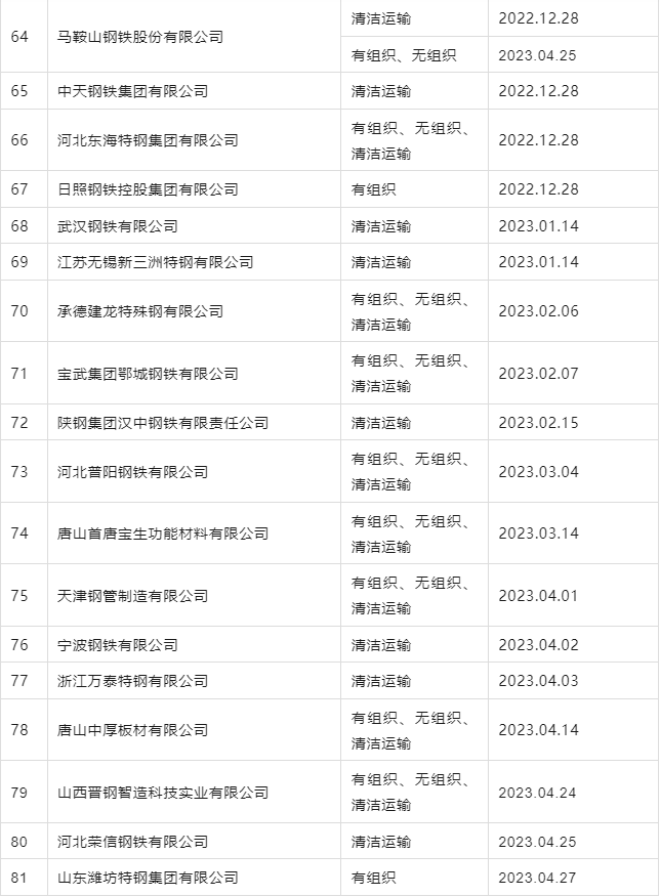 自2020年8月起,中國鋼鐵工業協會開展了鋼鐵企業超低排放改造和評估監測進展情況公示工作。從中國鋼鐵工業協會網站獲悉,截至2023年7月11日,已有91家企業在鋼協網站進行公示。
