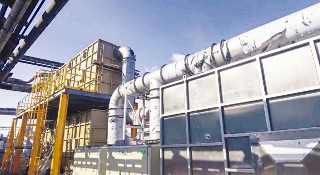 ▲鞍鋼礦業大孤山球團廠球團主煙氣超低排放治理項目。該廠在原有煙氣除塵係統基礎上增設了脫硫脫硝裝置,確保汙染物排放達標。