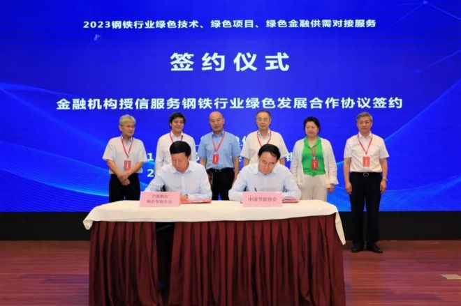 會議進行了“聚合行業資源 賦能鋼鐵行業高質量發展簽約”儀式,中國鋼鐵工業協會、中國節能協會、中國循環經濟協會共同簽約;以及“金融機構對中國節能協會授信額度合作簽約”儀式,中國光大銀行、寧波銀行分別為中國節能協會提供50億元、500億元人民幣授信額度。