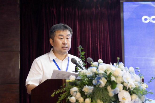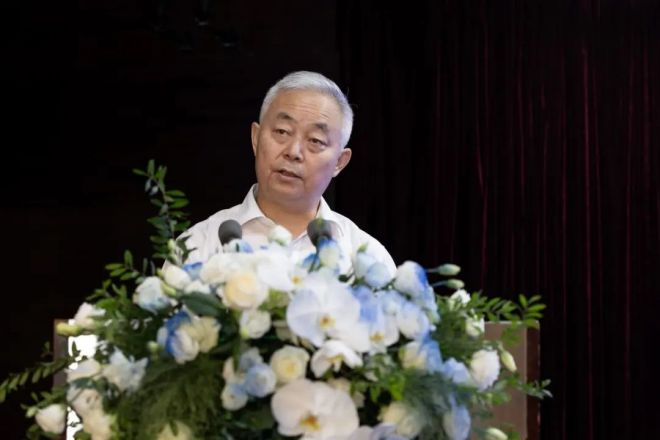 圖為江蘇天舜金屬材料集團董事長姚聖法作題為《螺紋鋼團體標準對其產業發展的推動和引領作用》的學術報告。