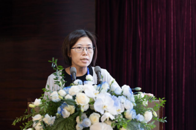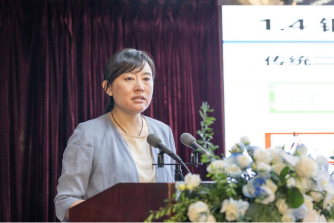 上海鋼聯電子商務副總裁任竹倩介紹下半年螺紋鋼市場走勢分析及營銷渠道的發展情況。