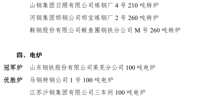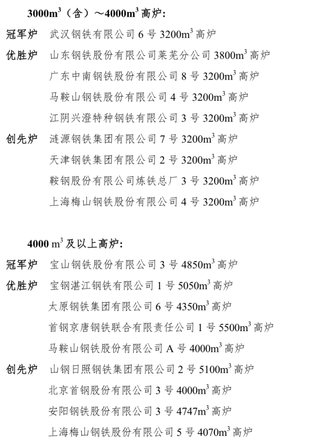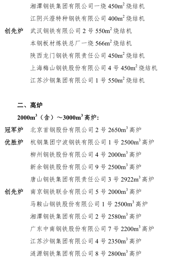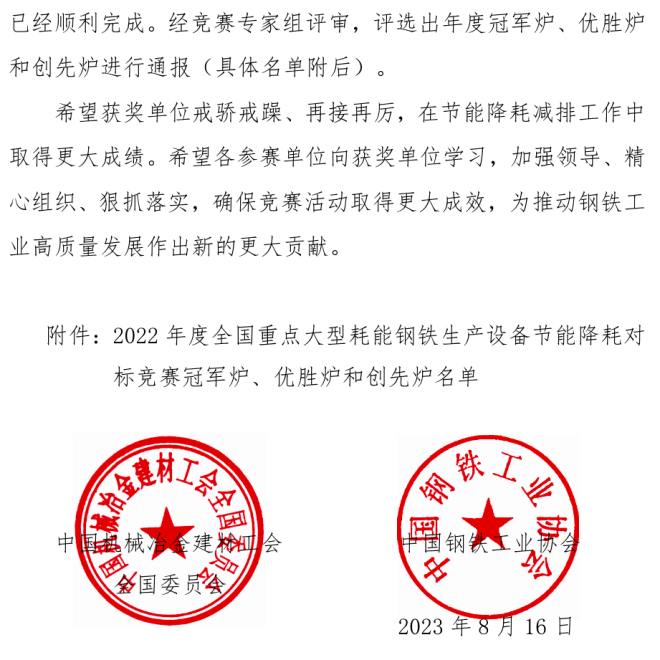 冠軍爐、優勝爐、創先爐名單 | 2022年度全國重點大型耗能鋼鐵生產設備節能降耗對標競賽