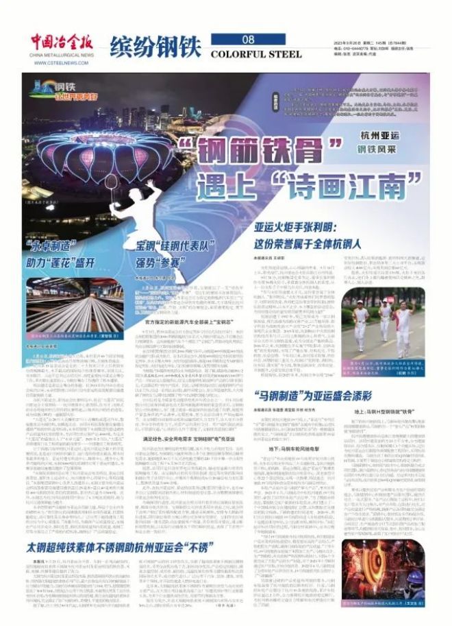 在此次亞運會上,鋼鐵力量隨處可見。無論是來自寶武、鞍鋼、河鋼等鋼企的優質鋼鐵產品,還是來自杭鋼集團的火炬手,無不閃耀著“更快、更高、更強”的奧林匹克精神光芒,展現出創新進取、一往無前的中國鋼鐵風采。