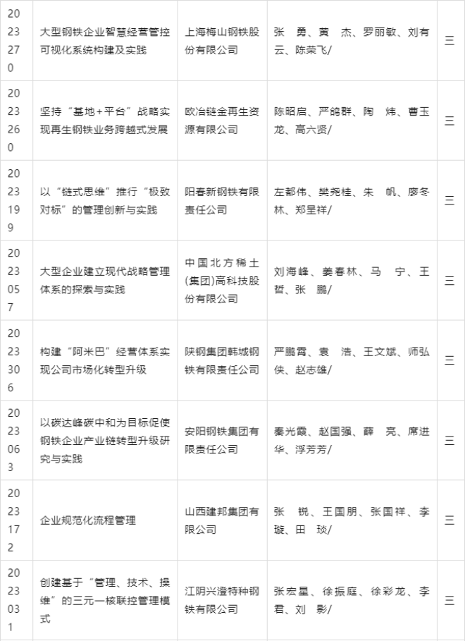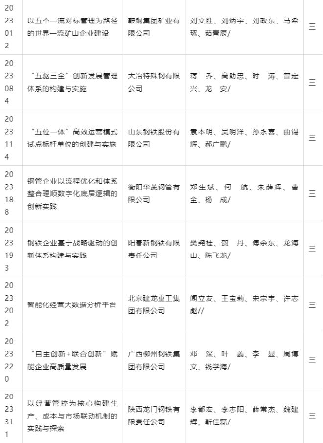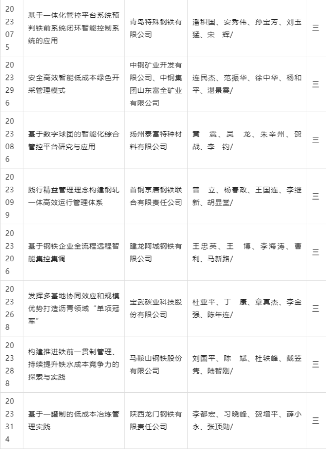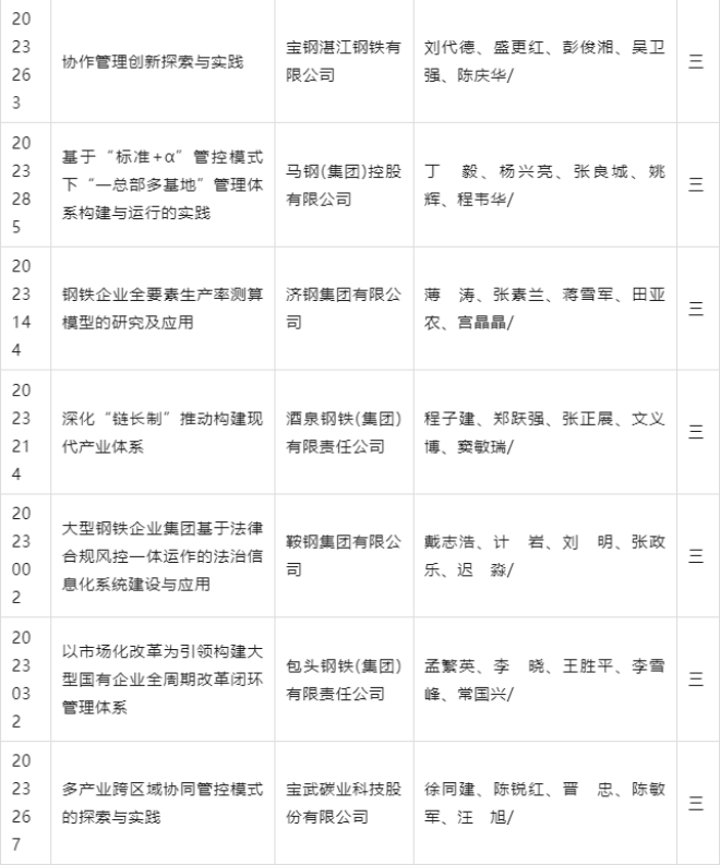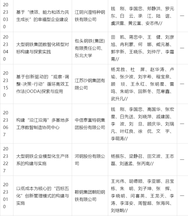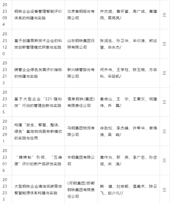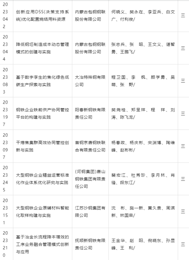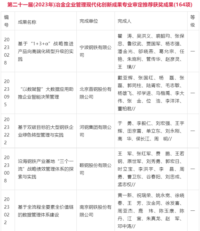 公示 | 第二十一屆(2023年)冶金企業管理現代化創新成果專業審定推薦獲獎成果