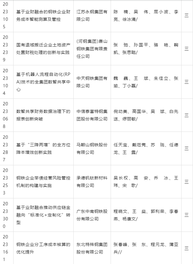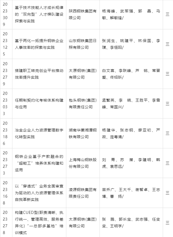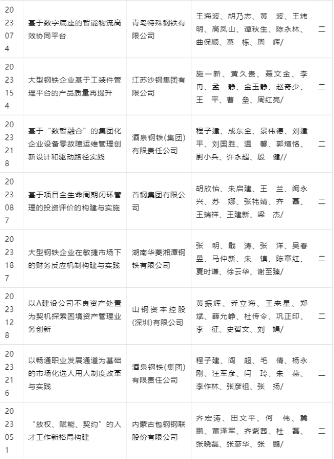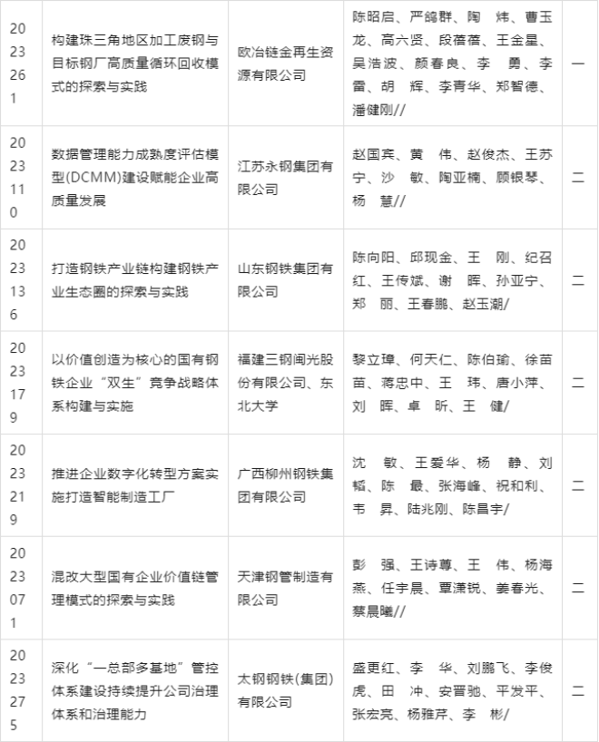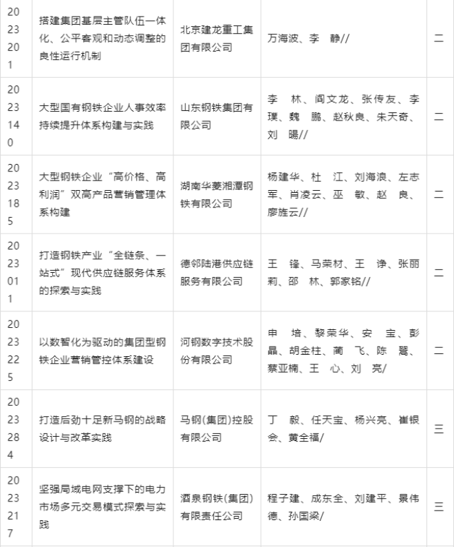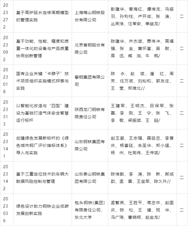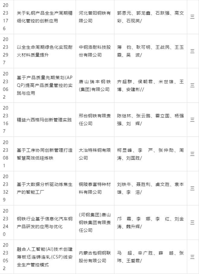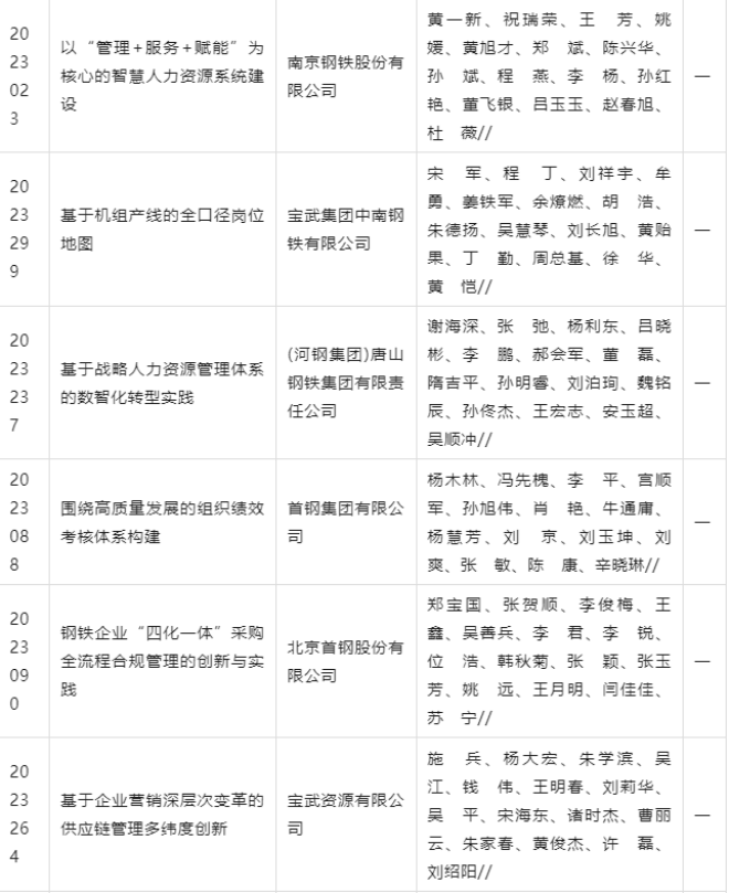 公示 | 第二十一屆(2023年)冶金企業管理現代化創新成果專業審定推薦獲獎成果