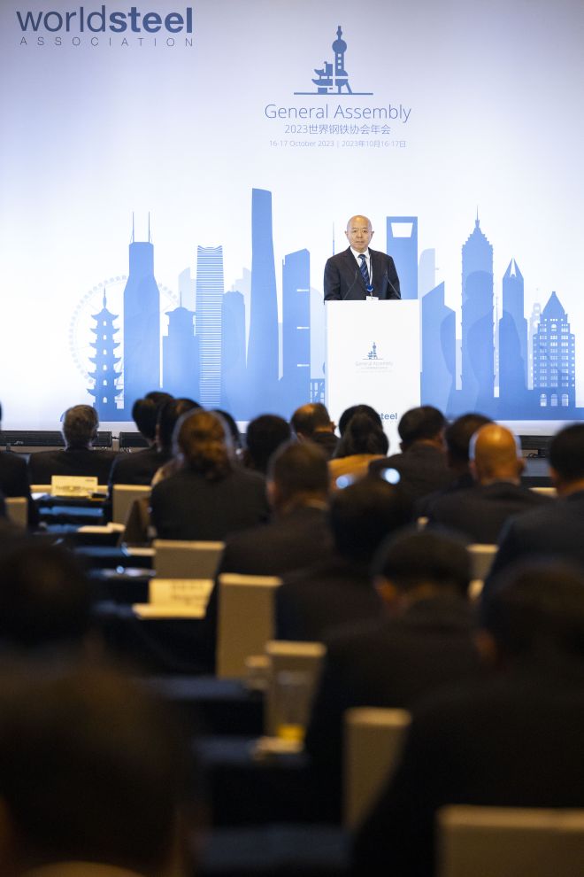 值此轉型發展的重要時刻,全球鋼鐵工業的企業家、專家、學者,齊聚黃浦江畔,共同探討全球鋼鐵工業麵臨的重大問題,共同謀劃發展路徑,共同推動綠色低碳轉型、數字化賦能,對應對全球氣候變化和促進經濟可持續高質量發展,非常及時,十分重要。