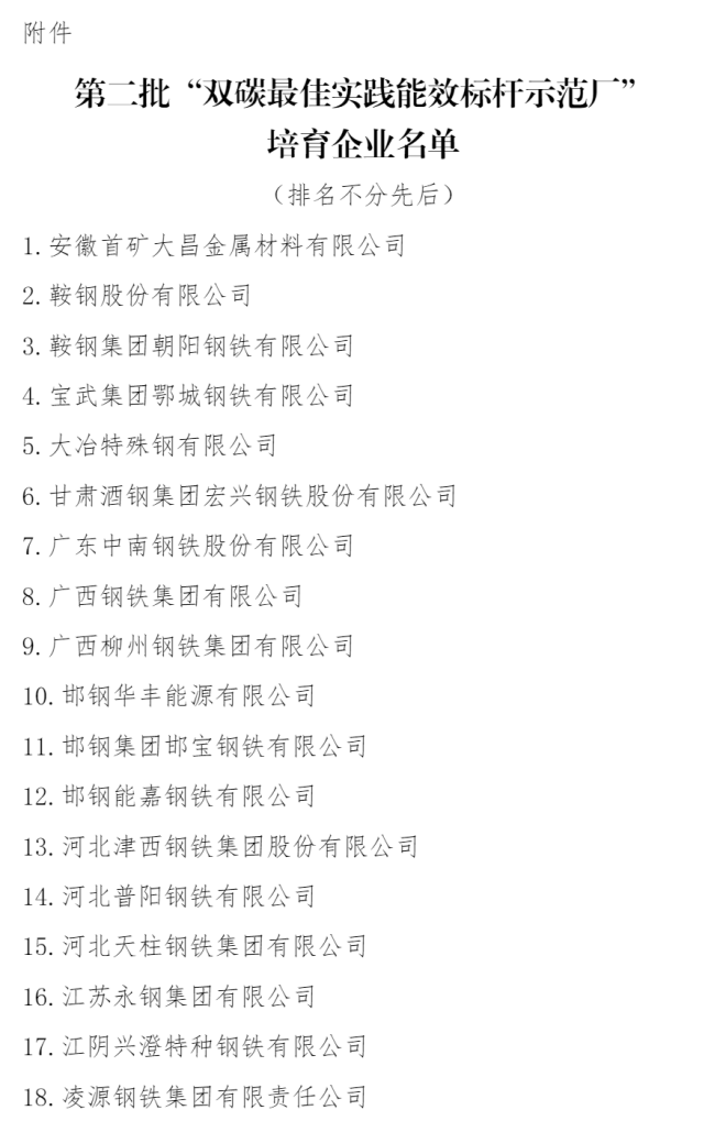 第二批“雙碳最佳實踐能效標杆示範廠”培育企業公布