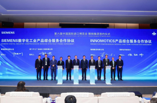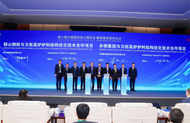 論壇期間,鞍鋼集團與8家海外供應商集中簽約。其中,鞍鋼集團與澳大利亞力拓集團簽訂高爐爐料結構優化技術合作備忘錄,與德國特諾恩洛伊公司、英國普銳特公司、俄羅斯埃爾西公司等3家合作夥伴簽訂采購協議,與德國西門子、德國茵夢達、瑞士ABB、德國博世力士樂等4家合作夥伴簽訂長期合作協議,涉及低碳技術、數字化工業產品、煤炭、機械設備等領域。
