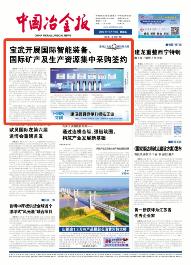 簽約儀式上,寶武與普銳特、特諾恩、索拉斯、中作商事株式會社、德國喬格公司、日本製鐵、蒙古能源、歐亞資源、法國埃赫曼集團、阿聯酋薩曼科鉻公司、嘉能可、嘉新國際等全球知名供應鏈合作夥伴進行了國際智能裝備、國際礦產及生產資源簽約,涉及新能源汽車用無取向矽鋼產線設備,優質焦煤、錳礦、鉻鐵、鎳鐵、鐵礦石等資源,以及熱軋原板等生產性資源,預計不低於上一屆央企交易團寶武分團采購金額水平。寶鋼股份、八鋼公司、寶武資源、中鋼集團、歐冶工業品等寶武相關子公司分別與相關合作夥伴簽署采購協議。