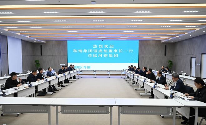 11月27日,河鋼集團黨委書記、董事長於勇在河鋼國際學術交流中心會見鞍鋼集團黨委書記、董事長譚成旭。雙方圍繞深化合作交流、共同推動中國鋼鐵工業轉型升級和高質量發展等內容進行了深入交流。