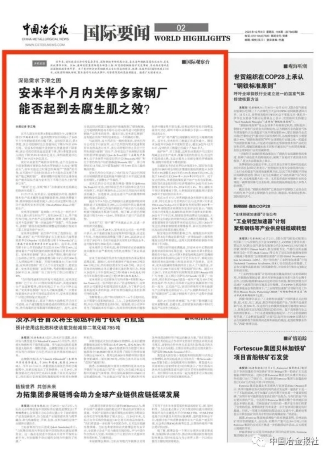 中國冶金報 中國鋼鐵新聞網