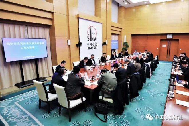 12月8日,中國鋼鐵工業協會黨委組織的2023年度跨產業巡回辦公和高質量發展幹部培訓第二課在中國石油化工集團有限公司(下稱中國石化)舉辦。鋼協黨委書記何文波和鋼協班子成員、副秘書長以及相關部門負責人、行業綠色鋼鐵標準課題組部分成員參加了此次培訓。中國石化黨組成員、副總經理,股份公司總裁喻寶才為本次專題培訓班授課,中國石化發展計劃部、物資裝備部、油田事業部、天然氣分公司、石科院、經研院等領導向培訓班成員介紹了中國石化和石油天然氣行業發展現狀和未來發展前景。