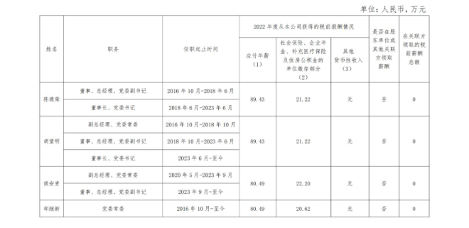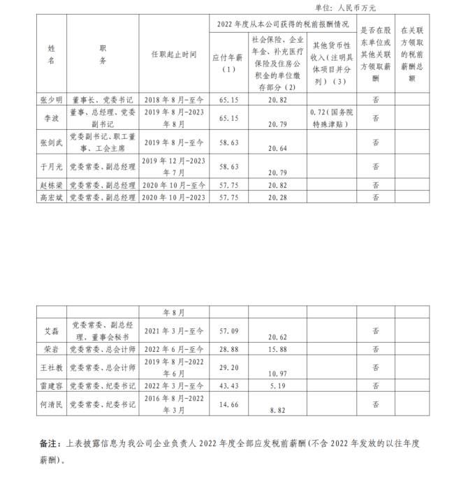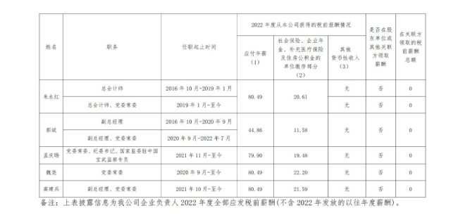 備注:上表披露信息為該公司企業負責人2022年度全部應發稅前薪酬(不含2022年發放的以往年度薪酬)。