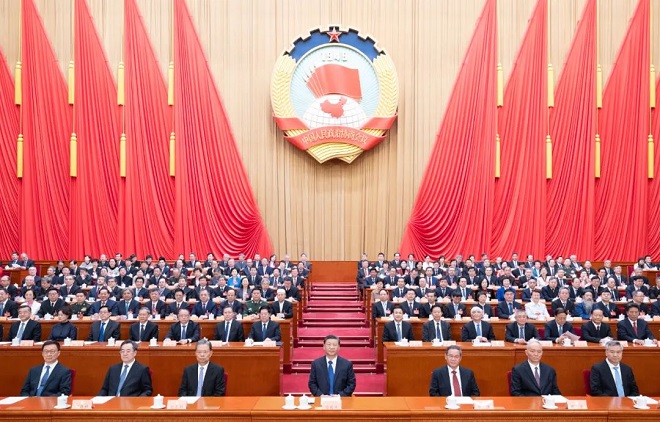 習近平、李強、趙樂際、蔡奇、丁薛祥、李希、韓正等在主席台就座。