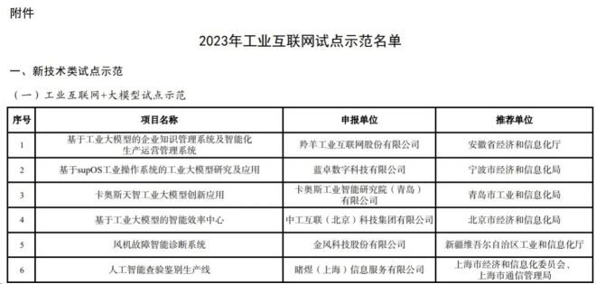 關於公布2023年工業互聯網試點示範項目名單的通知