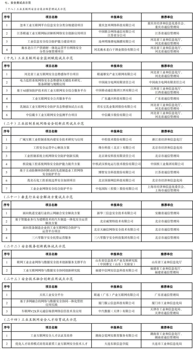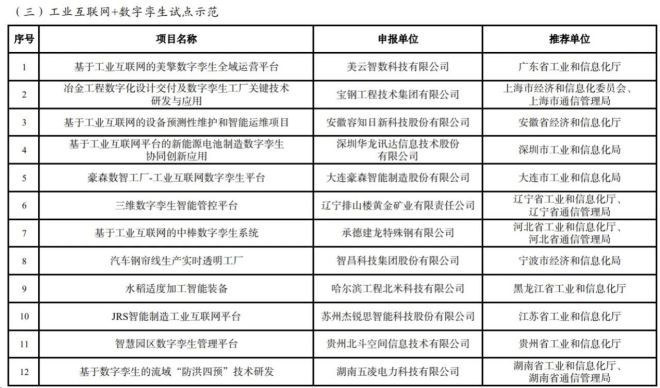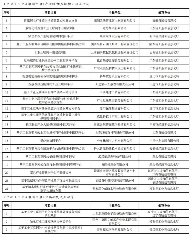 根據《工業和信息化部辦公廳關於組織開展2023年工業互聯網試點示範項目申報工作的通知》(工信廳信管函〔2023〕319號)要求,經企業自主申報、地方推薦、專家評審和網上公示,確定了 2023 年工業互聯網試點示範項目名單,現予以公布。
