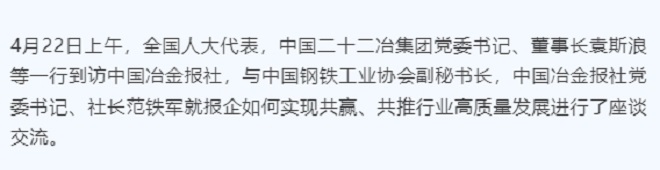 攜手同行,一起向未來——全國人大代表,中國二十二冶集團黨委書記、董事長袁斯浪到中國冶金報社交流座談