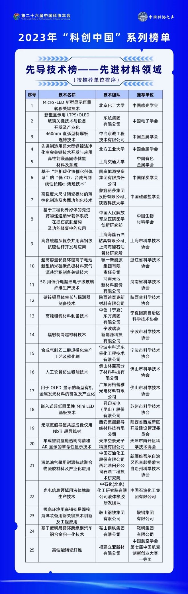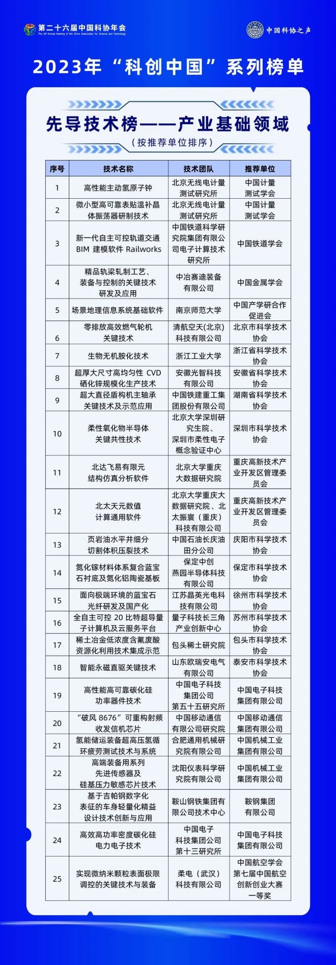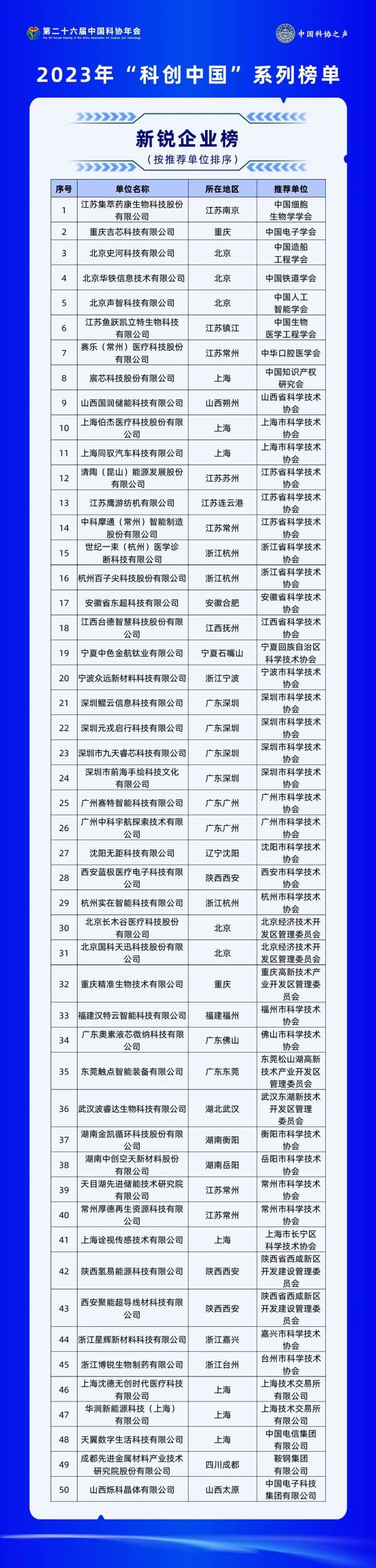 第二十六屆中國科協年會上,中國科協正式發布2023年“科創中國”係列榜單。