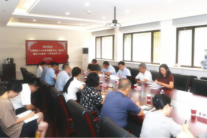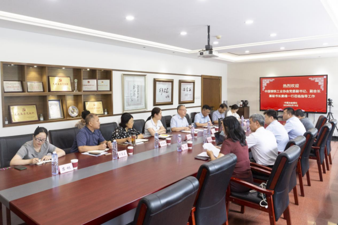 8月19日,中國鋼鐵工業協會黨委副書記、副會長兼秘書長薑維一行蒞臨中國冶金報社指導工作,全麵梳理、總結鋼協六屆八次理事(擴大)會議宣傳報道工作,並就中國國際鋼鐵大會、“沙鋼杯”行業大賽、建國75周年等下一步行業重點宣傳工作展開座談。