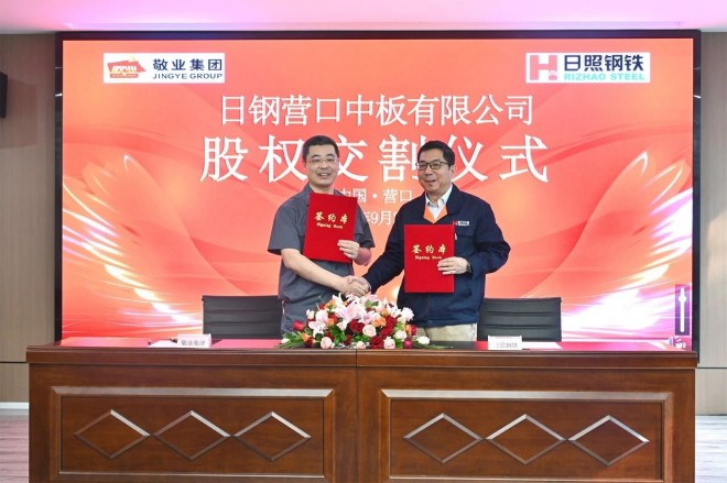 2024年9月29日ri,敬jing業ye集ji團tuan有you限xian公gong司si與yu日ri鋼gang營ying口kou中zhong板ban有you限xian公gong司si正zheng式shi合he並bing合he作zuo,並bing隆long重zhong舉ju行xing了le營ying口kou中zhong板ban股gu權quan交jiao割ge儀yi式shi。敬jing業ye集ji團tuan與yu日ri鋼gang營ying口kou中zhong板ban合he並bing合he作zuo後hou,將jiang具ju有you六liu條tiao中zhong厚hou板ban生sheng產chan線xian,年nian產chan量liang將jiang達da到dao1500萬噸,成為截至目前全球最大的中厚板製造商。二者融為一體,強強聯合,優勢互補,競爭力更強,將實現“1+1>2”的效果。