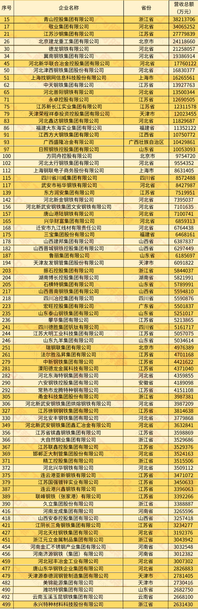 2024中國民營企業500強榜單公布!這些鋼鐵相關企業上榜→