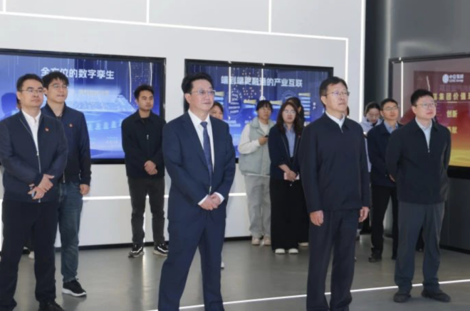 圖為夏農在黃一新的陪同下,參觀南鋼寬厚板廠、智慧運營中心和未來鋼鐵智造館