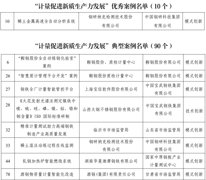多家鋼企入選國家市場監督管理總局“計量促進新質生產力發展”優秀案例、典型案例名單