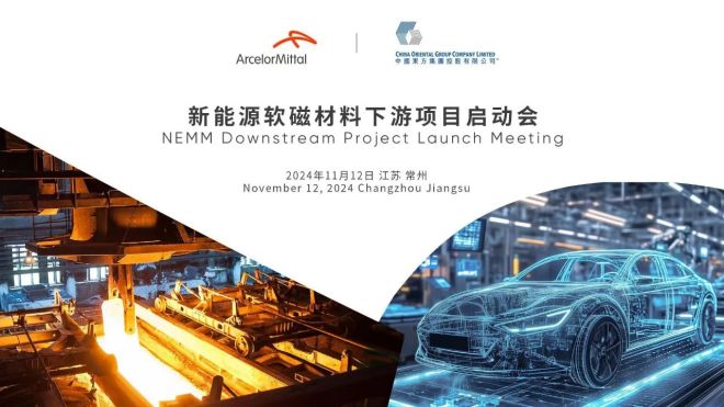 11月12日,安賽樂米塔爾攜手中國東方,共同投資26億美元的NEMM新能源軟磁材料項目常州籌建啟動會在江蘇常州召開。這是繼11月6日,安賽樂米塔爾津西新材料(唐山)項目啟動會後,集高科技、綠色、智能、數字化的新能源軟磁材料項目全麵落地推進,進入全麵實質性建設階段。