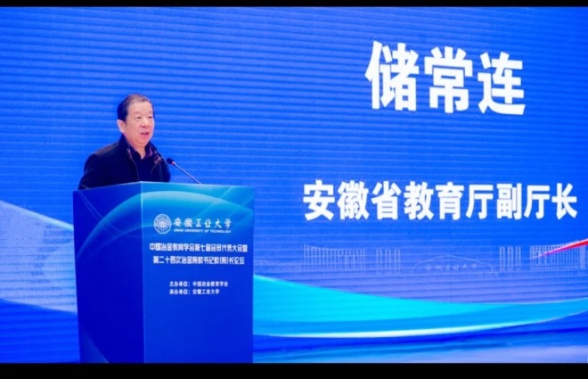 11月20日,第二十四次冶金院校書記校(院)長論壇在馬鞍山舉行。中國鋼鐵工業協會組織人事部(黨委辦公室)主任臧若愚、中國冶金教育學會會長臧勇,馬鞍山市市長葛斌、副市長闞青鶴,安徽省教育廳副廳長儲常連,安徽工業大學黨委書記陸林,中國寶武馬鋼集團黨委副書記、紀委書記唐琪明出席論壇開幕式。