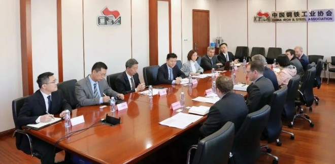 薑維對大使一行到訪表示熱烈歡迎,簡要介紹了中國鋼鐵行業需求、供給、鋼價、礦價、效益等基本情況,並對鋼鐵與礦石上下遊產業鏈實現協同合作、互利共贏表示關切,對建立綠色礦產、脫碳技術等交流機製提出建議。他還重點介紹了中國鋼鐵行業在數字化轉型、超低排放改造、極致能效方麵取得的成效。
