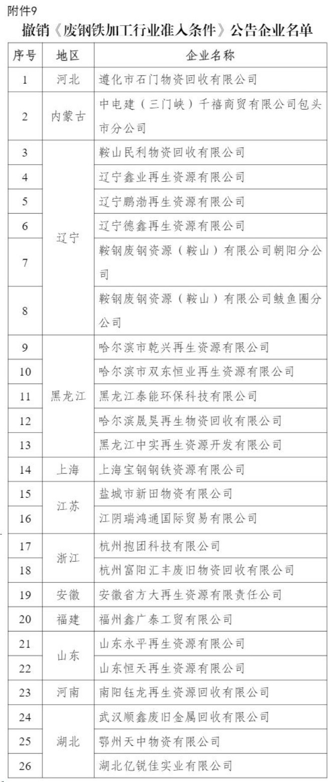 12月19日,工業和信息化部發布公告,根據《廢鋼鐵加工行業準入條件》等規範條件及相關公告管理辦法規定,經專家審核、現場核查及網上公示等程序,現將符合《廢鋼鐵加工行業準入條件》企業名單(第十二批)、符合《機電產品再製造行業規範條件》企業名單(第一批)等,以及變更、撤銷相關行業規範公告的企業名單予以公告。