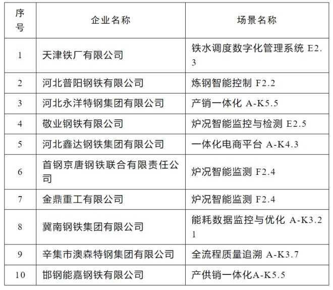 首批河北省鋼鐵行業數字化轉型優秀應用場景名單