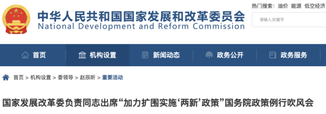 近jin日ri,國guo新xin辦ban舉ju行xing國guo務wu院yuan政zheng策ce例li行xing吹chui風feng會hui。國guo家jia發fa展zhan改gai革ge委wei副fu主zhu任ren趙zhao辰chen昕xin,國guo家jia發fa展zhan改gai革ge委wei資zi源yuan節jie約yue和he環huan境jing保bao護hu司si司si長chang劉liu德de春chun等deng出chu席xi發fa布bu會hui,介jie紹shao加jia力li擴kuo圍wei實shi施shi“兩新”政策有關情況,並答記者問。