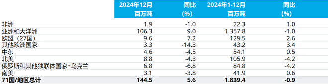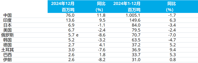 2024年12月及全年全球粗鋼產量