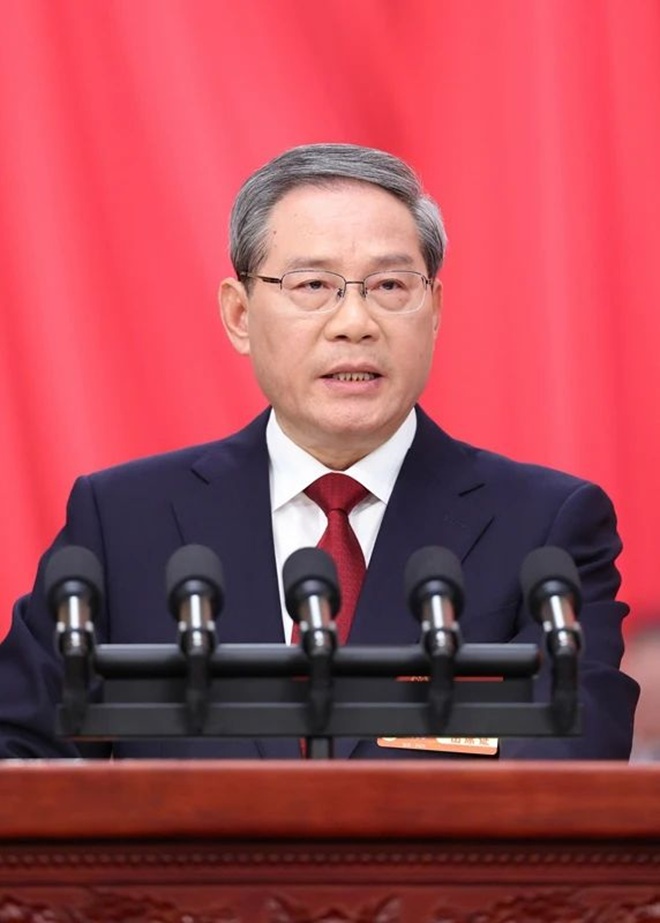 3月5日上午,第十四屆全國人民代表大會第三次會議在北京人民大會堂開幕。國務院總理李強作政府工作報告。新華社記者 劉彬 攝