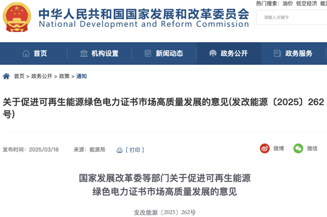 3月18日,國家發展改革委等五部門聯合發布《關於促進可再生能源綠色電力證書市場高質量發展的意見》(以下簡稱《意見》)。