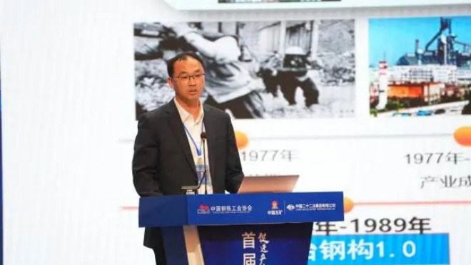 圖為首鋼建設郭中華《首鋼鋼結構建築產業鏈創新成果》