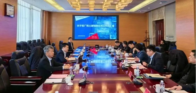 2025年4月2日,中國鋼鐵工業協會黨委副書記、副會長兼秘書長薑維帶隊赴包鋼集團調研,並就行業共性技術研發項目稀土耐蝕鋼的推廣應用與包鋼集團公司黨委書記、董事長孟繁英進行座談交流。