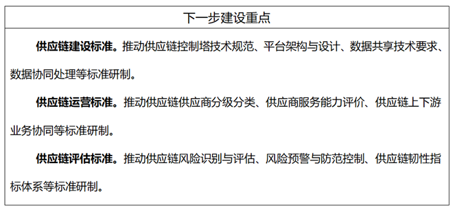 主要包括供應鏈風險識別與評估、風險預警與防範控製等風險評估標準;供應鏈韌性指標體係、測試與評估方法等性能評估標準。
