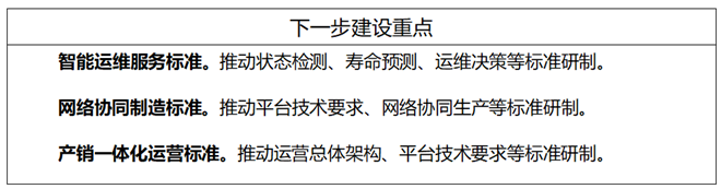大規模個性化定製標準主要包括通用要求、需求交互要求、設計要求、生產要求等標準;智能運維服務標準主要包括通用要求、數據接口、狀態監測、故障診斷、壽命預測、運維決策等標準;網絡協同製造標準主要包括平台技術要求、資源模型要求、協同經營管理、網絡協同設計、網絡協同生產等標準;產銷一體化運營主要包括運營總體架構、平台技術要求、數據分類規範等標準;其他主要包括上述四類以外的智能製造新模式的通用要求和服務交付等標準。