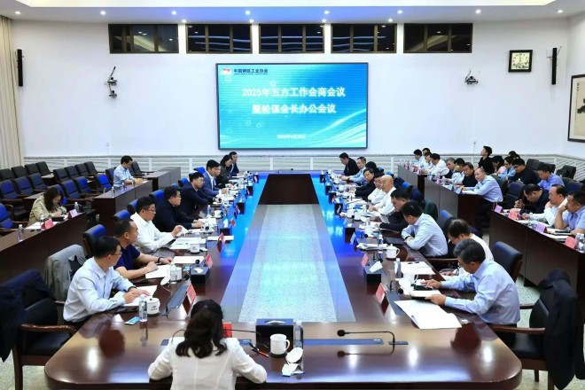 為充分發揮跨部門溝通協商工作機製作用,4月28日,中國鋼鐵工業協會在京組織召開2025年五方工作會商會議暨輪值會長辦公會議,國家有關部委司局領導、各輪值會長單位主要負責人以及協會駐會領導參加會議。會議由鋼協會長,首鋼集團黨委書記、董事長趙民革主持,鋼協黨委書記、執行會長何文波做總結講話。