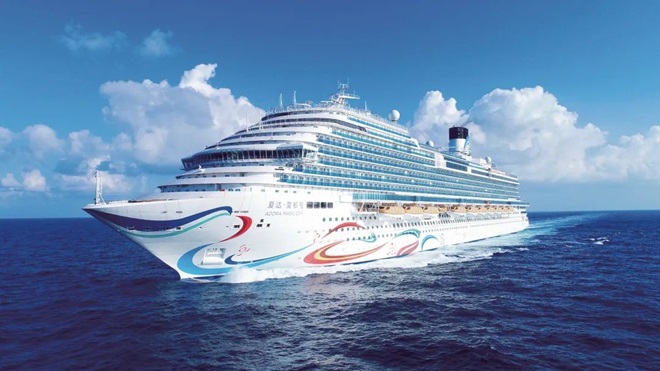 圖為航行中的“愛達·魔都號”郵輪