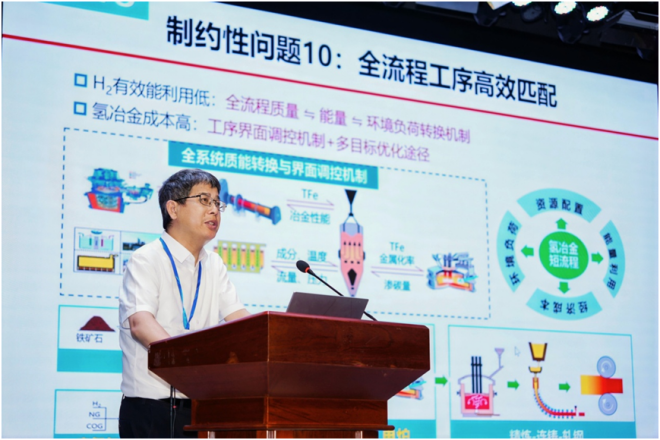 ▲東北大學教授儲滿生作題為“基於氫基豎爐的氫冶金新工藝基礎研究”的報告